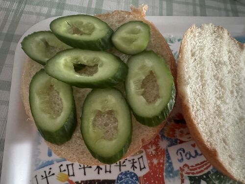 ポニョのきゅうりの食べ方ぁ!!!!! サンドイッチ作ろうとしてビックリした。